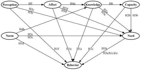 Kellens et al. [14] built a model upon the above information seeking models to explore the main determinants of information seeking behavior. The results showed that risk perception, response efficacy, and perceived hazard knowledge had positive correlations with information seeking behavior. Furthermore, Kellens et al. [14] paid considerable attention to information need as the mediator. However, since the direct effect of information need on information seeking behavior failed to be proven, this resulted in the failure of information need as a mediating role.
