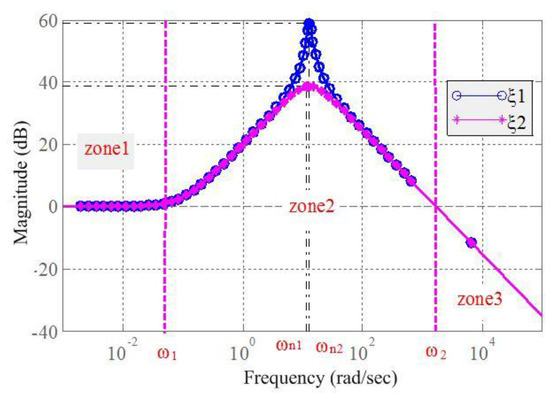 Bode diagram of the cab mount system (ξ2 < ξ1).