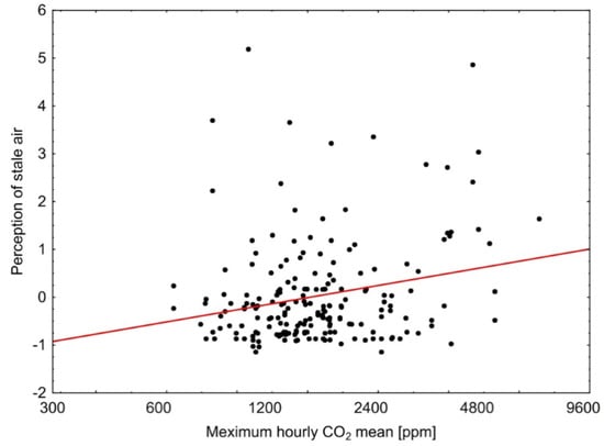 2 mean value = maximum hourly mean) and the perception of stale indoor air (