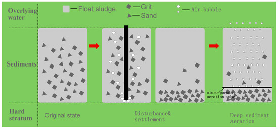 Deep aeration: The sediment aeration equipment (a micro-porous air diffuser) was installed during the sedimentation process (after stopping the disturbance for 10 min). Intermittent aeration was maintained for 15 days, for 1 h every 2 h.