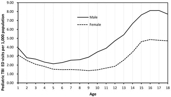 - Centers for Disease Control and Prevention. Rates of TBI-Related Emergency Department Visits by Age Group—United States, 2001–2010. Available online: https://www.cdc.gov/traumaticbraininjury/data/rates_ed_byage.html (accessed on 16 October 2016).