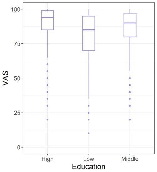VAS means increased with higher educational background but variance was high (Figure 4).