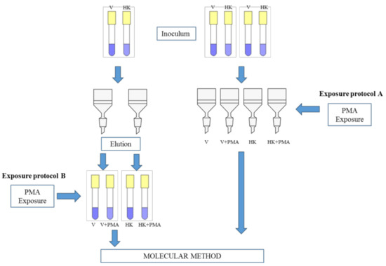 2.3. Exposure Protocols and Quantification by qPCR and PMA-qPCR