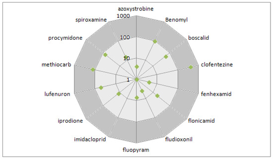 | Iprodione | 19 | 0.00690 | 2% | 0.00550 | 1% | 0.01569 | 4% | 0.04825 | 12% |