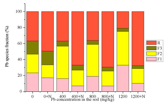 Soil pollution by heavy metals has become a serious concern in many developing countries due to intense industrialization and urbanization. Heavy metals are more complex than other environmental pollutants because they can be toxic to all living organisms. They are not biodegradable and tend to accumulate in tissues [1]. Lead is recognized as one of the most widespread toxic metal contaminants and pervasive health concerns in the environment [2]. It is generated from the natural weathering of rocks and industrial activities, including mining and lead ore smelting, lead-acid battery manufacturing, lead-based paints, etc. [3]. In addition, Pb is not an essential nutrient in the metabolic processes of plants and animals, and it can accumulate to high levels and have biological toxicity to organisms [4,5]. The limit for Pb content is 35 mg/kg, according to the environmental quality standards for soils [6]. Therefore, the development of remediation strategies for Pb-contaminated soils is very important for human health and ecological protection.