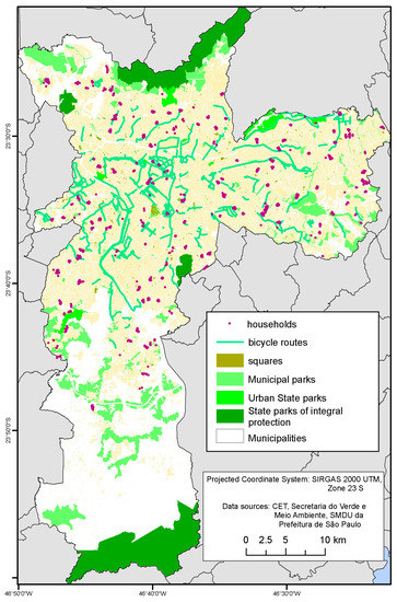 - Municipality of Sao Paulo. Geosampa. Available online: http://geosampa.prefeitura.sp.gov.br/PaginasPublicas/_SBC.aspx (accessed on 1 July 2016).