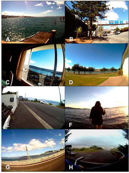 9]. Another limitation of previous studies is the lack of measurement of blue space exposures outside of the home, in transit or in relation to other places spend time, including work locations and schools. Furthermore, because there are few studies that have objectively measured blue space exposure, aside from residential distance to coastline, there is limited knowledge on the differing ways of quantifying such exposure and into the demographic factors associated with variations in exposure. Wearable cameras may offer a reliable method for quantifying actual exposure to blue space—both visually and in relation to blue space usage [