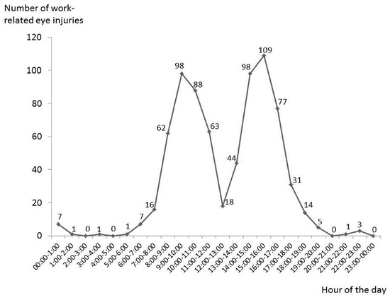 - Cai, M.; Zhang, J. Epidemiological Characteristics of Work-Related Ocular Trauma in Southwest Region of China. Int. J. Environ. Res. Public Health 2015, 12, 9864–9875. [Google Scholar] [CrossRef] [PubMed]