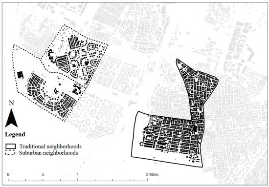 3.1. Sketch Maps’ Summary Scores in Traditional and Suburban Neighborhoods