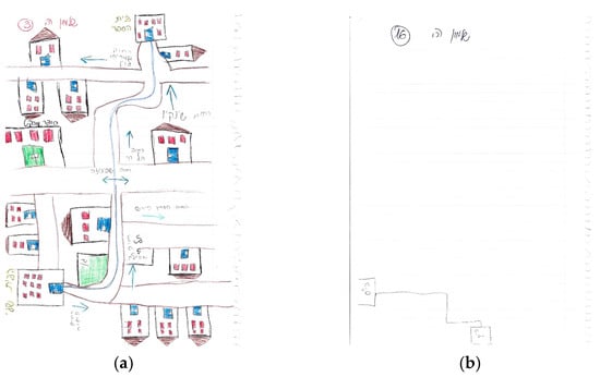 - To explore children’s spatial knowledge and representation of their h–s route as obtained through their drawn sketch maps (henceforth: maps’ summary scores). Following previous studies [28,29] we distinguished between the map’s orientation and structure, and its richness, which reflect the number of details drawn in the map.