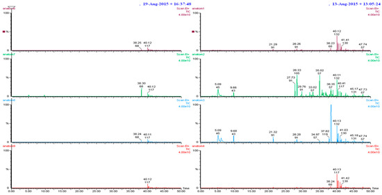 Table 1 reports VOCs detected and listed according to elution time. Two examples of VOCs chromatograms are shown in Figure 1.