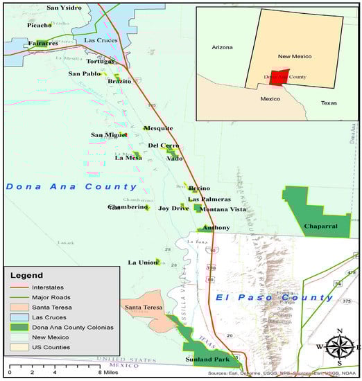 - UNM Bureau of Businesse & Economic Research. Colonias. Available online: http://bber.unm.edu/colonias (accessed on 30 November 2016).