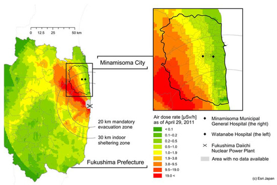- Tsubokura, M.; Kato, S.; Morita, T. Assessment of the Annual Additional Effective Doses amongst Minamisoma Children during the Second Year after the Fukushima Daiichi Nuclear Power Plant Disaster. PLoS ONE 2015, 10, e0129114. [Google Scholar] [CrossRef] [PubMed]