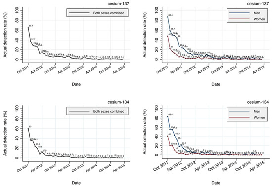 - Hayano, R.S.; Watanabe, Y.N.; Nomura, S. Whole-body counter survey results 4 months after the Fukushima Dai-ichi NPP accident in Minamisoma City, Fukushima. J. Radiol. Prot. 2014, 34, 787–799. [Google Scholar] [CrossRef] [PubMed]