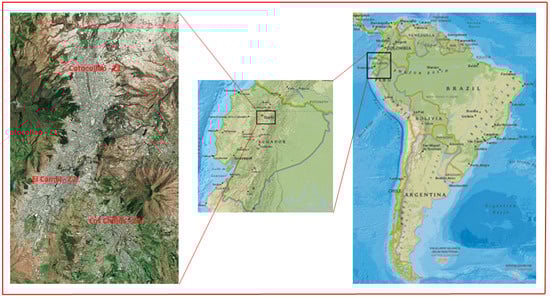 - United Nations Environmental Program. Environment Climate Change Outlook: ECCO Metropolitan District of Quito; Regional Office for Latin America and the Caribbean, Division of Early Warning and Assessment, United Nations Environmental Program: Panama City, Panama, 2011; p. 64. [Google Scholar]