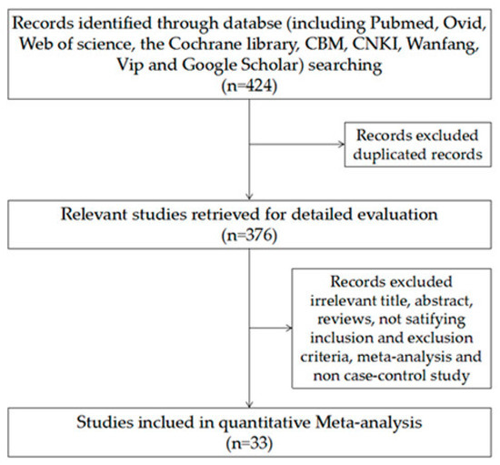 Studies were excluded from the meta-analysis for the following reasons: (1) abstracts, letters, reviews, expert opinions, case reports, or nonclinical studies; (2) studies had duplicate or overlapping data; (3) study was based on tissue, blood, or animals.