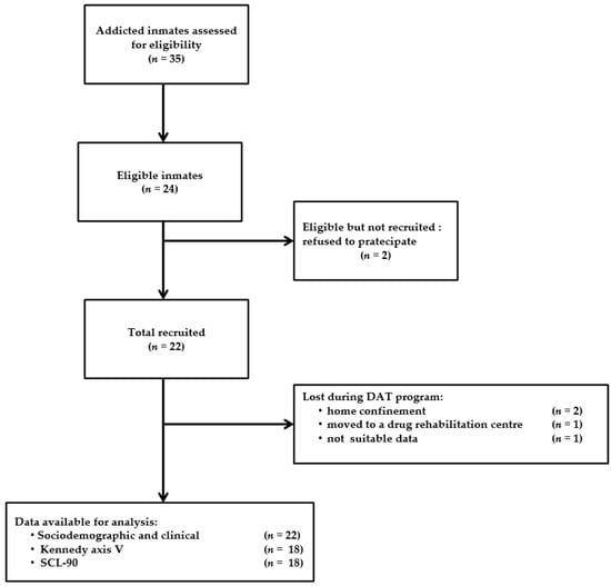 Contalbrigo, L.; De Santis, M.; Toson, M.; Montanaro, M.; Farina, L.; Costa, A.; Nava, F.A. The Efficacy of Dog Assisted Therapy in Detained Drug Users: A Pilot Study in an Italian Attenuated Custody Institute. Int. J. Environ. Res. Public Health 2017, 14, 683. https://doi.org/10.3390/ijerph14070683