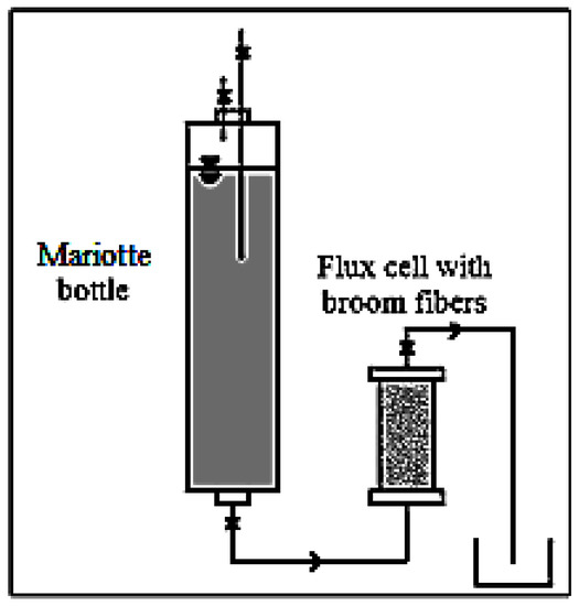 The hydraulic conductivity measurements were carried out in the laboratory, using a flow cell working as a permeameter at constant head. The scheme of the device utilized is shown in Figure 2.