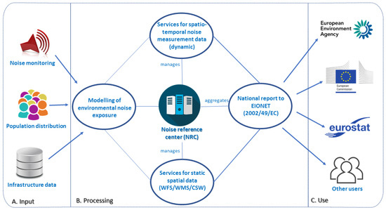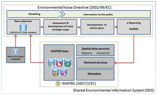 In accordance with the above-mentioned legislation, countries are required to produce strategic noise maps (data) on a five-year basis for all major roads, railways, airports and agglomerations. The outcome of these maps is then used by the competent authorities to identify priorities for action planning (aimed at reducing or avoiding exposure to harmful noise levels), and by the European Commission (EC) to assess exposure to noise, elaborate pan-European policy, and inform the general public. The objective of our paper is to propose an approach which can enhance the usability and access to environmental noise data through the application of a coherent reporting mechanism. In our proposal noise data is seen within the broader context of an environmental spatial data infrastructure (SDI). We consider that SDIs provide a unique opportunity for combining data across thematic domains [1,10] and countries [11]. The overarching context of this work is defined by the largest single regional SDI in the world, being established through the implementation of the INSPIRE Directive (Infrastructure for Spatial Information in the European Community, 2007/2/EC) [12]. This manuscript therefore elaborates on the potential for benefiting from (i) the harmonisation efforts within the CNOSSOS-EU process in Europe by (ii) using INSPIRE for unlocking, utilisation and reuse of relevant spatial data. There are opportunities and synergies that go beyond environmental noise. Considering the complexity and heterogeneity of the situation in Europe with regards to noise data, within the broader context of Digital Earth [13], the activities described here should be seen as a valuable example for the rest of the world.