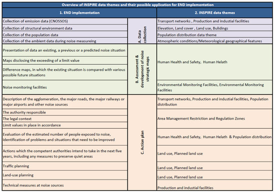 The END provides a framework for assessing and reducing the noise impact. The harmonisation of strategic mapping and development of appropriate action plans required for the mitigation of harmful noise effects is equally important to the harmonisation of assessment methods. That is why spatial information regarding the agglomerations, evaluation of population exposed to noise, action plans and related planning, required by the END themes listed in Figure 3 should be harmonised through adoption of the already established INSPIRE data models, making it easier to integrate, and if necessary to compare interoperable data from different sources.