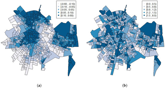 - Haining, R.; Law, J.; Griffith, D. Modelling small area counts in the presence of overdispersion and spatial autocorrelation. Comput. Stat. Data Anal. 2009, 53, 2923–2937. [Google Scholar] [CrossRef]