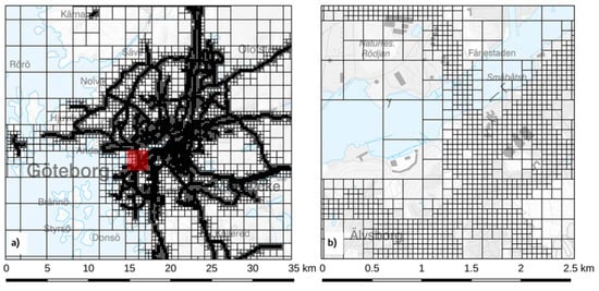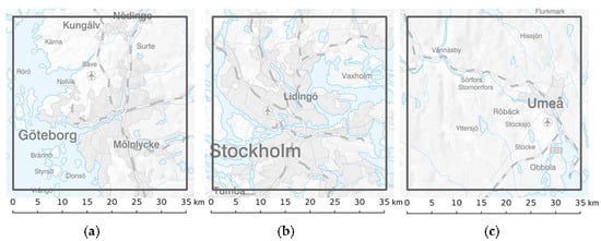 Figure 1. Stockholm is the largest of the three cities, with a population of about 1.7 million, followed by Gothenburg with a population of almost 700,000 and Umea with 110,000 people living inside the 35 × 35 km