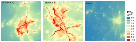 33]. For Gothenburg, the available emission inventory was provided by the city’s environmental administration and for Umea, a detailed inventory was available from the national dispersion modeling system SIMAIR (Swedish Meteorological and Hydrological Institute, Norrköping, Sweden) [