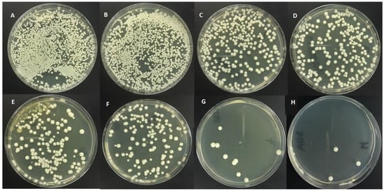 A 10 µL of each bullet was taken, and then it was diluted serially and spread on a petri dish containing Sabouraud dextrose agar (SDA) (Acumedica Co., Manufacturers, Inc.) and incubated for 48 h at 37 °C. A marker pen counter (Colony Counter; Bel-Art Scienceware, Wayne, NJ, USA) was used to count the number of Candida albicans colonies in each quadrant where acceptable growth was noted and the final number was corrected for the dilution factor. If the number of colonies was 500 or more, it was considered as an overgrowth (Figure 1) [37].