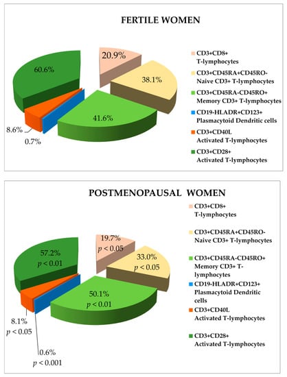 | CD Markers | Fertile Women | Postmenopausal Women | Significance | ||