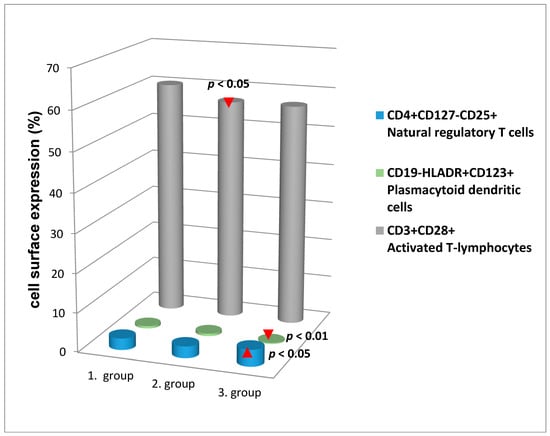 | CD3+CD28+ Activated T-lymphocytes | • | • | p < 0.05 | ||