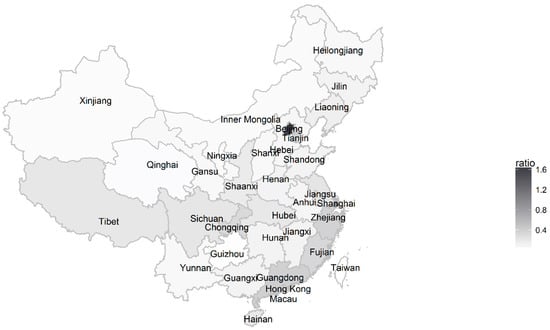 The geographic distribution of the users displaying anxiety is presented in Figure 2. The ratio is the number of the anxiety displayers per 100,000 population per area. Figure 2 shows that the ratio was higher in the southeast region of China, including the Zhejiang, Fujian, and Guangdong. These three provinces are three of the richest provinces in China. In addition, some big cities, such as Beijing and Shanghai, also had more anxious users than other areas. These two places are the two largest cities in China.