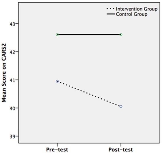 | CARS2 Score | 40.95 | 6.07 | 40.05 | 5.57 | −0.9 | 0.4 | 42.61 | 7.52 | 42.61 | 7.52 | 0 | 0 | 7.219 | 0.013 * | 0.5 |