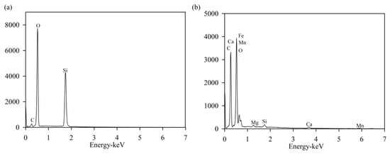 The EDS images of (a) normal quartz sand and (b) MeOx.