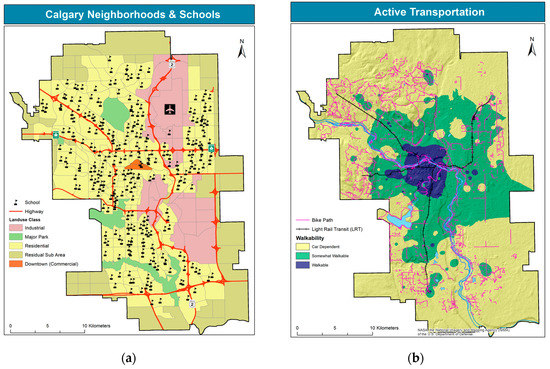 - CBE (Calgary Board of Education). School Walk Zones, Building and Modernizing Schools 2017. Available online: http://www.cbe.ab.ca/schools/building-and-modernizing-schools/Pages/school-walk-zones.aspx (accessed on 23 May 2017).