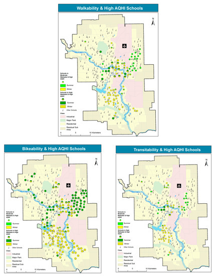 Bertazzon, S.; Shahid, R. Schools, Air Pollution, and Active Transportation: An Exploratory Spatial Analysis of Calgary, Canada. Int. J. Environ. Res. Public Health 2017, 14, 834. https://doi.org/10.3390/ijerph14080834