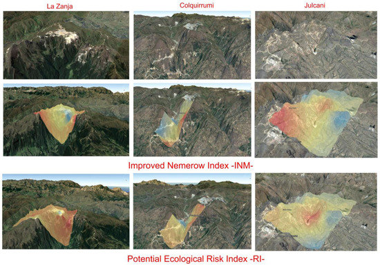 Furthermore, when considering the potential ecological risk index (RI), the levels of contamination (from low to high) from heavy metals from the superficial horizons of soils were as follows: La Zanja < Julcani < Colquirrumi.