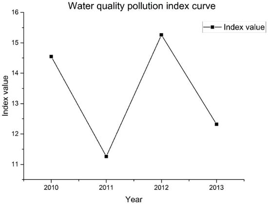 The water quality PI was calculated to evaluate water quality at the Qilihai Wetland Reserve, established based on the weighted average of individual indicators. The PI curve from 2010 to 2013 showed the variations in pollution levels during the monitoring period (Figure 5), with the water pollution degrees classified into three levels and a standard deviation value of 1.62.