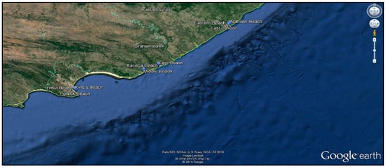- GOOGLE MAPS. Map of Eastern Cape Beaches. [Online]. Google, 2016. Available online: https://www.google.co.za/maps/search/eastern+cape+beaches+map+from+east+london+to+port+elizabeth/@33.9988012,22.5881698,2619m/data = !3m2!1e3!4b1?hl = en&authuser = 0 (accessed on 18 June 2016).
