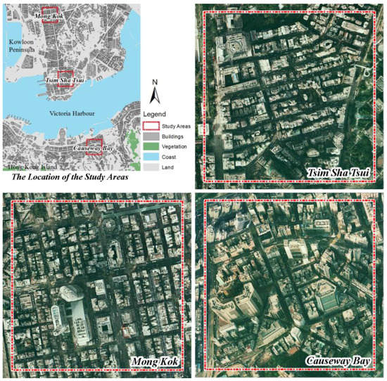 These three intraurban areas represent two distinct urban morphological characteristics. As one of the most famous urban commercial districts and tourist attractions in Hong Kong, Mong Kok has a road network and a zoning plan based on a classical orthogonal grid. This orthogonal grid layout has been widely used in urban planning in intraurban areas with flat terrain (Many famous large cities around the world have the similar orthogonal grid layout such as Manhattan in New York, Vancouver and Barcelona [29]). Compared with Mong Kok, both Tsim Sha Tsui and Causeway Bay have a more irregular urban road network due to the irregular terrain and the costal location. Mong Kok also has a relatively lower and more homogeneous building height distribution than Causeway Bay. The building morphology of the Tsim Sha Tsui area is more similar to the Causeway Bay, but with a more compact layout.