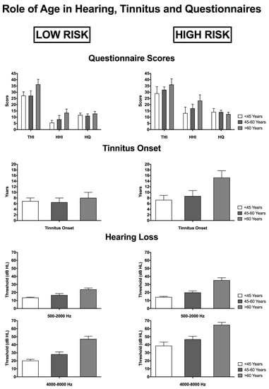 3.5. The Role of Age in Relation to Tinnitus, Hearing Characteristics and Questionnaire Scores