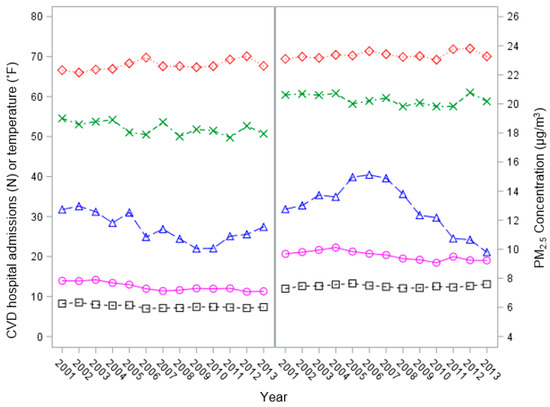 - Haley, V.B.; Talbot, T.O.; Felton, H.D. Surveillance of the short-term impact of fine particle air pollution on cardiovascular disease hospitalizations in New York State. Environ. Health 2009, 8, 42. [Google Scholar] [CrossRef] [PubMed]