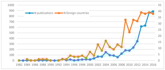In the broad scenario of transnational research cooperation, China is one of the most interesting cases. Starting from the launch of the open door policy, China has put it at the center of its scientific and technological development, as a key factor to favor the modernization of the country [,]. Consequently, its position within the international scientific scenario has been constantly increasing over the years []. Furthermore, the national scientific community is increasingly open to international partnerships. Up to the eighties, the number of internationally co-authored papers of scientists located in China was very limited, since in the pre-reform period only a few selected scholars were allowed to publish in international journals, and they were strictly controlled. Afterwards, the government has constantly increased its commitment towards the improvement of international collaboration in science and technology, with the first boost given by the S&T Cooperation Program for Priority Projects launched with the 10th Five-Year Plan 2000–2005. Since then, all the Chinese research institutions, including universities, have increased the programs and incentives to international collaboration and there has been a constant increase in the number of internationally co-authored papers in the country []. Such increase may be explained by the opportunity, given to Chinese researchers by international collaborations, to access advanced knowledge and instruments, and enter more visible circuits, therefore enhancing their potential impact [].