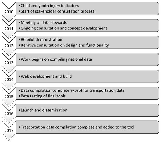 Directly addressing a recommendation that Canada should choose a set of indicators comparable across institutions and organizations to monitor injury [], the CIHR Team in Child and Youth Injury Prevention (the Team) defined and specified 34 injury indicators for Canadian children and youth, as well as a set of 27 indicators specific to First Nations and Inuit children and youth through a modified-Delphi process [,,]. A meeting of national level data organizations (e.g., Stats Can, CIHI, etc.) was held in 2011 to determine availability and accessibility of injury data for the national indicators, with positive support to provide data to populate the dashboard.