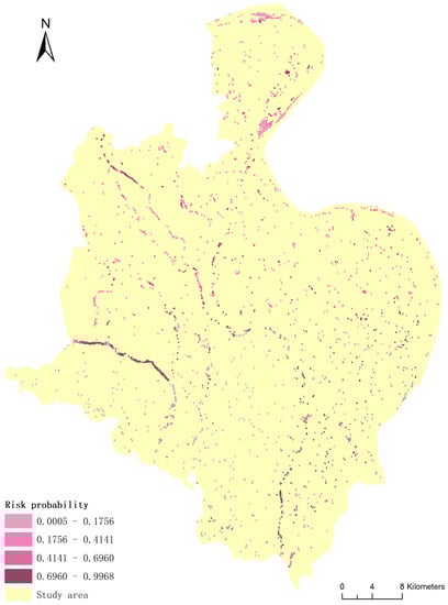 3.3. Predicted Potential Snail Habitats within the Snail Transmission Reach after Flooding