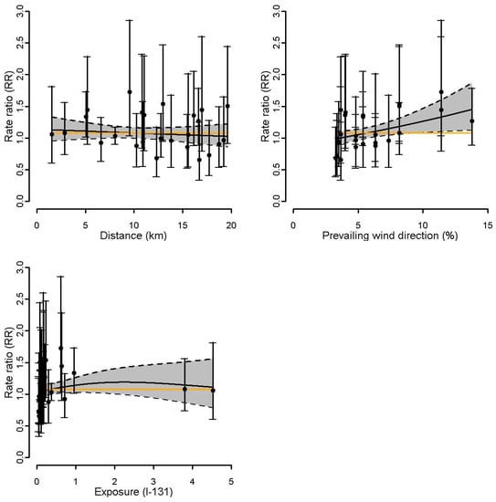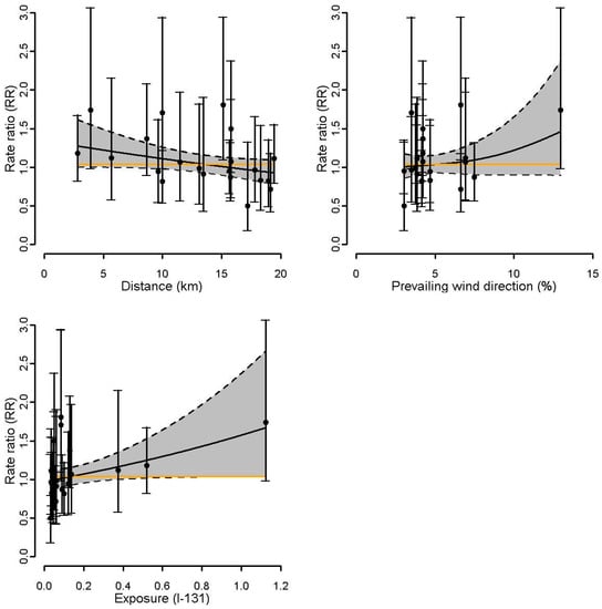 3.3. Association between Surrogate Exposures and Incidence of Thyroid Cancer around Nuclear Sites