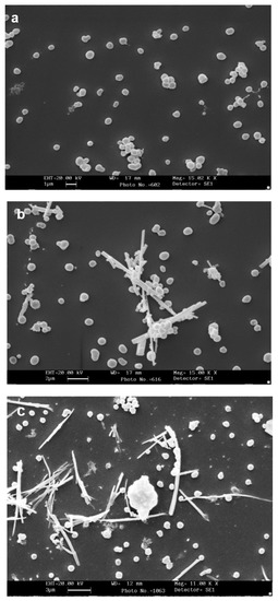 2.3. Characterization of Fibers by SEM—Energy Dispersive X-ray Spectrometry (EDX) Analysis