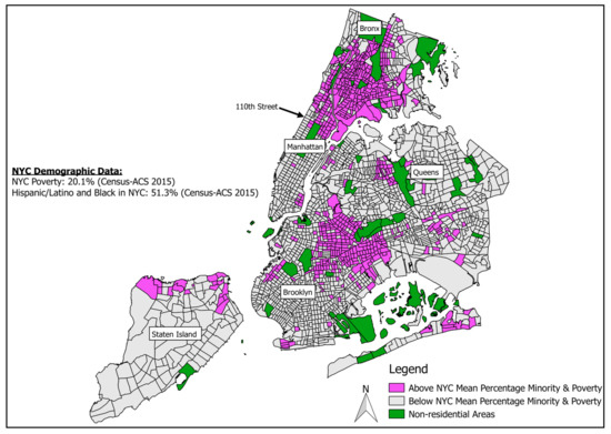 Disadvantaged Populations by U.S. Census Tract (Note: The study defines ‘Uptown’ as above 110th Street and the Bronx).