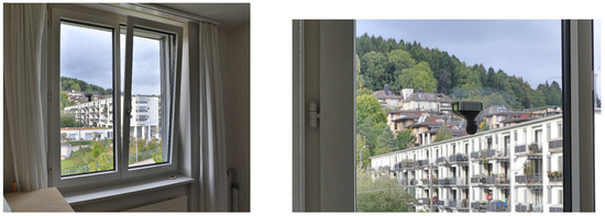 So far, only a few studies have assessed façade sound insulation compared to outdoor noise levels for open or tilted window positions. In a field study performed in Australia, an average level difference for open windows of 11 dB(A) resulted [15]. Two studies performed at the German DLR-Institut für Luft- und Raumfahrtmedizin (The German Aerospace Center (DLR) is the national aeronautics and space research centre of Germany) [16,17,18] reported similar values, ranging from 10 to 13 dB(A) depending of the type of noise source. In the same two studies, tilted, i.e., slightly open windows were also tested. While the measurements of 2006 resulted in differences of 14 and 15 dB(A) for road and air traffic, respectively, the follow-up study yielded average values of 18 to 19 dB(A) for road and railway traffic. For aircraft noise, Jansen et al. [19] as well as the Swiss Federal Office for the Environment (FOEN) [20] recommend assuming a level difference between the outdoors and indoors in the case of tilted windows of 15 dB(A). For the same noise source, Maschke et al. [21] derived a mean difference in level of 12 dB(A) for tilted window positions based on loudspeaker experiments. The European Environment Agency summarizes these results in its “Guidelines for noise exposure assessment” [22] where an attenuation of 5–10 dB(A) is recommended for open windows and 10–15 dB(A) for slightly open windows.