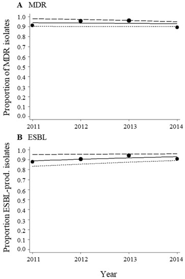 3.3. No Change in Trends of MDR Acinetobacter spp. Isolates during the Period from 2011–2014