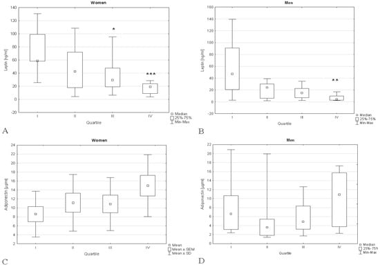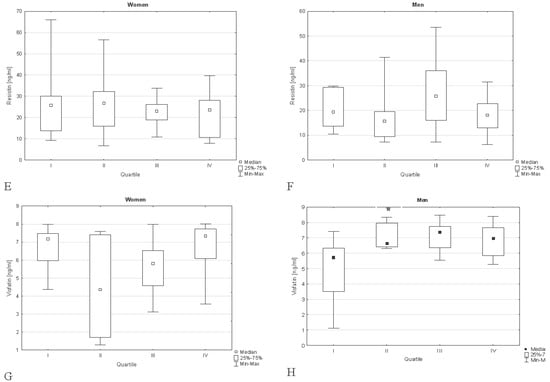 4.3. Adipokines’ Profile Across Quartiles of Vitamin D Concentration